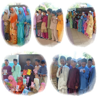 Si kecil SRIQ 1: (Dia tersenyum malu)..Kita tak sabarlah nak jamuan raya cikgu. Kita nak pakai baju raya, kasut raya. Kita pun nak bawak banyak kuih raya..